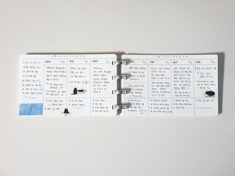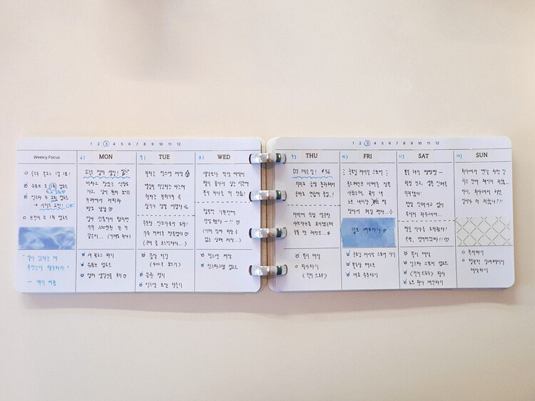 가로로 펼치면 한 주를 한 눈에 조망할 수 있습니다.